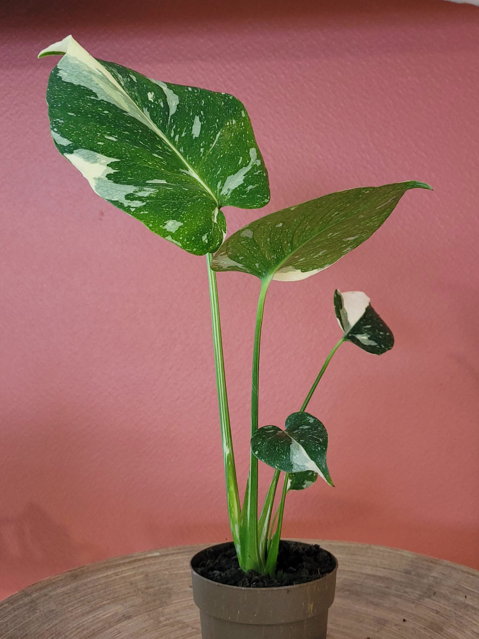 La Monstera Thai Constellation est une variété très prisée pour son feuillage spectaculaire vert foncé avec marbrures blanc crème, qui lui donne un effet “constellation” unique et élégant.