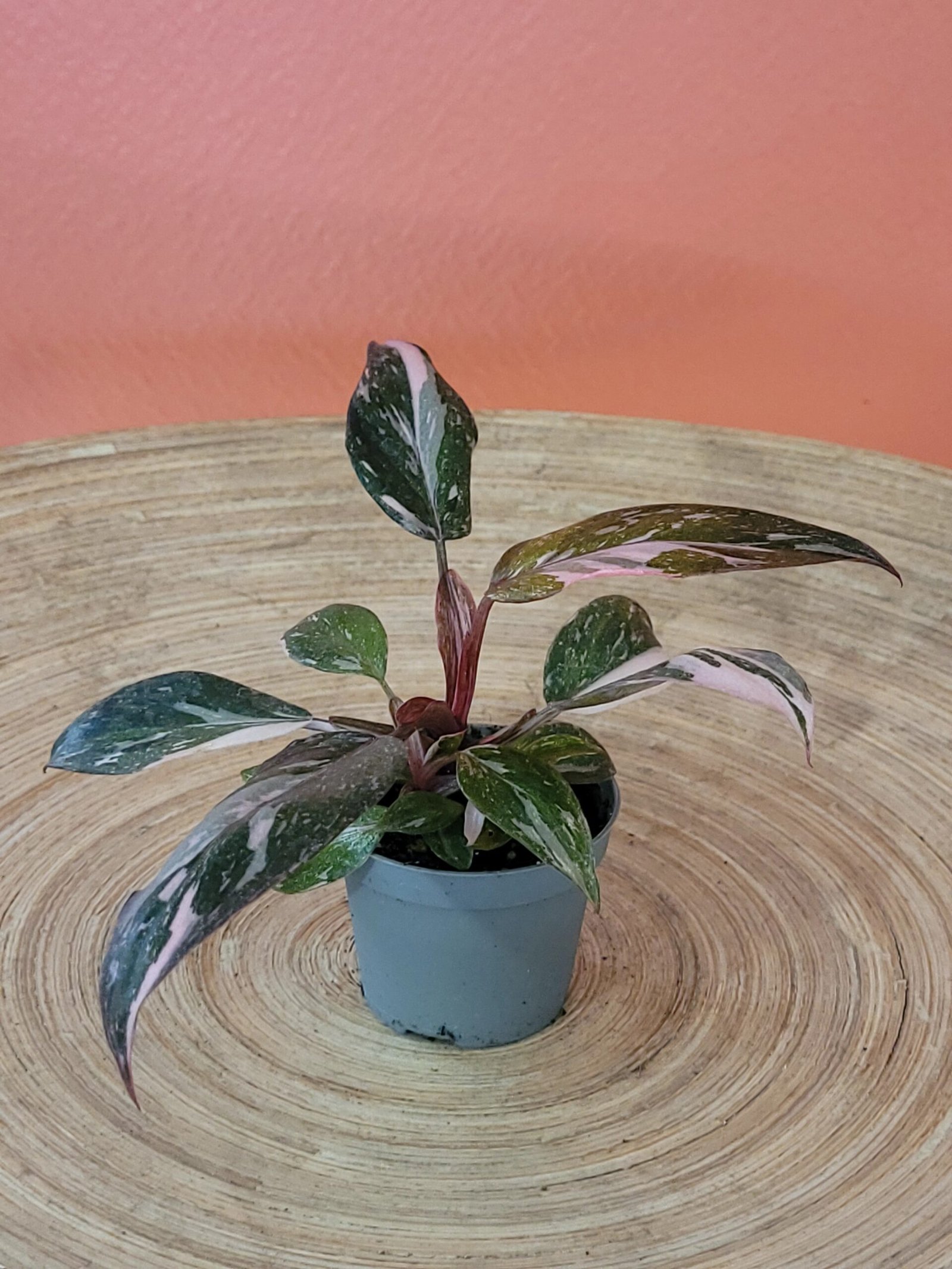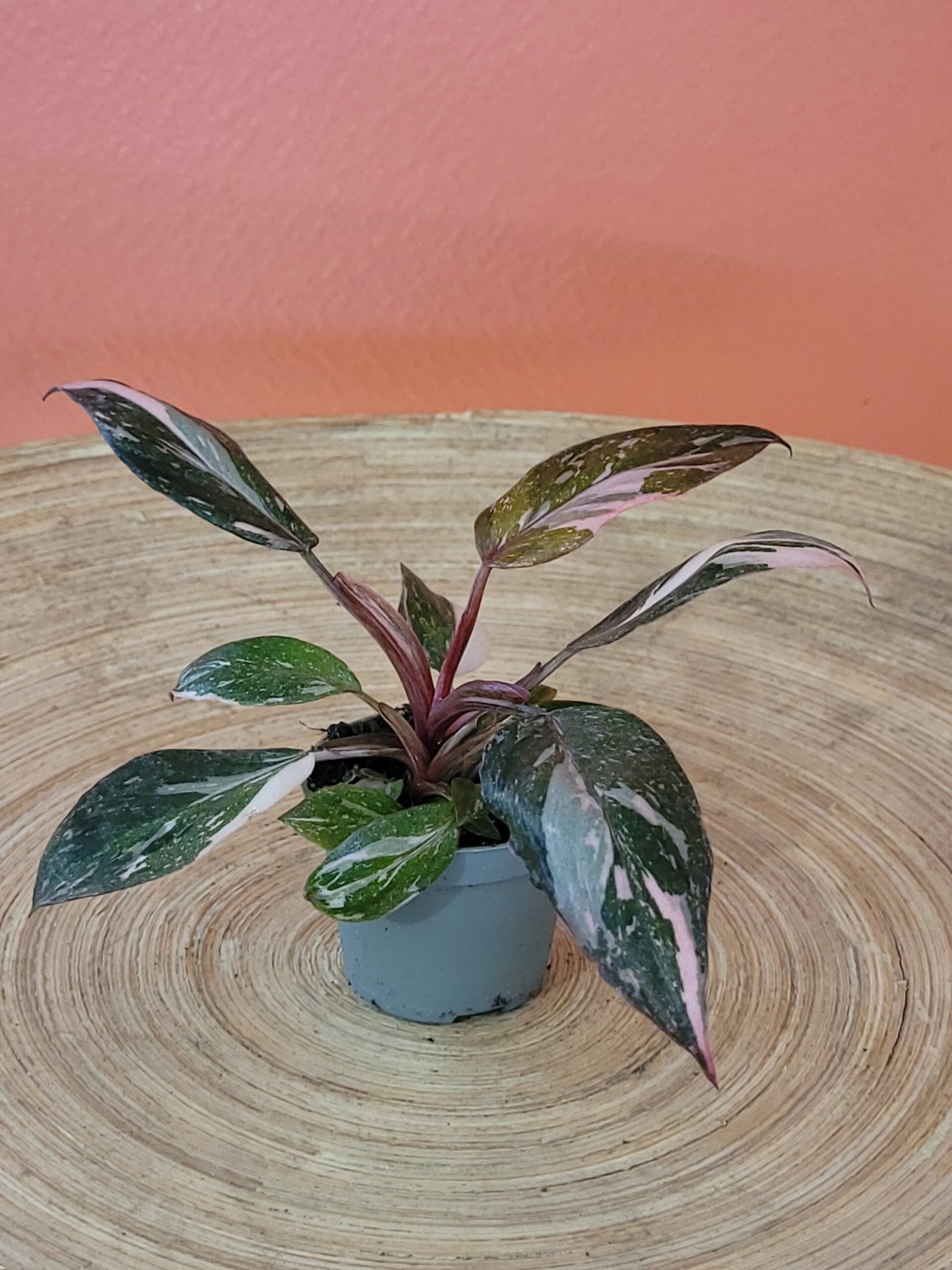 Jeune plante tropicale au feuillage vert profond marbré de blanc crème, idéale pour débuter une collection de Philodendron.