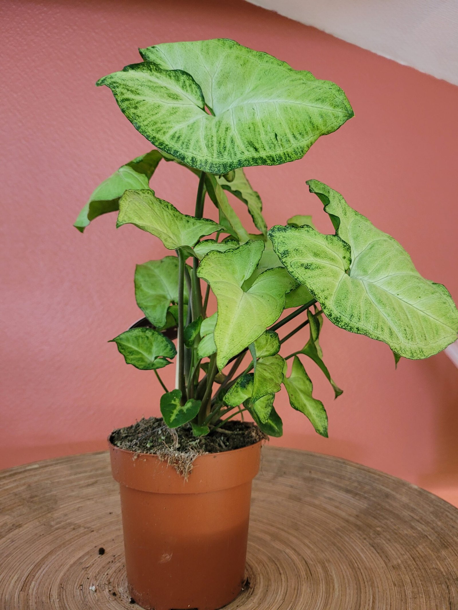 Cette plante grimpante ou retombante est facile à entretenir, idéale pour les débutants comme pour les passionnés de Syngonium. Elle préfère une lumière indirecte vive, un substrat léger et drainant, et une humidité modérée pour conserver la vivacité de ses couleurs.