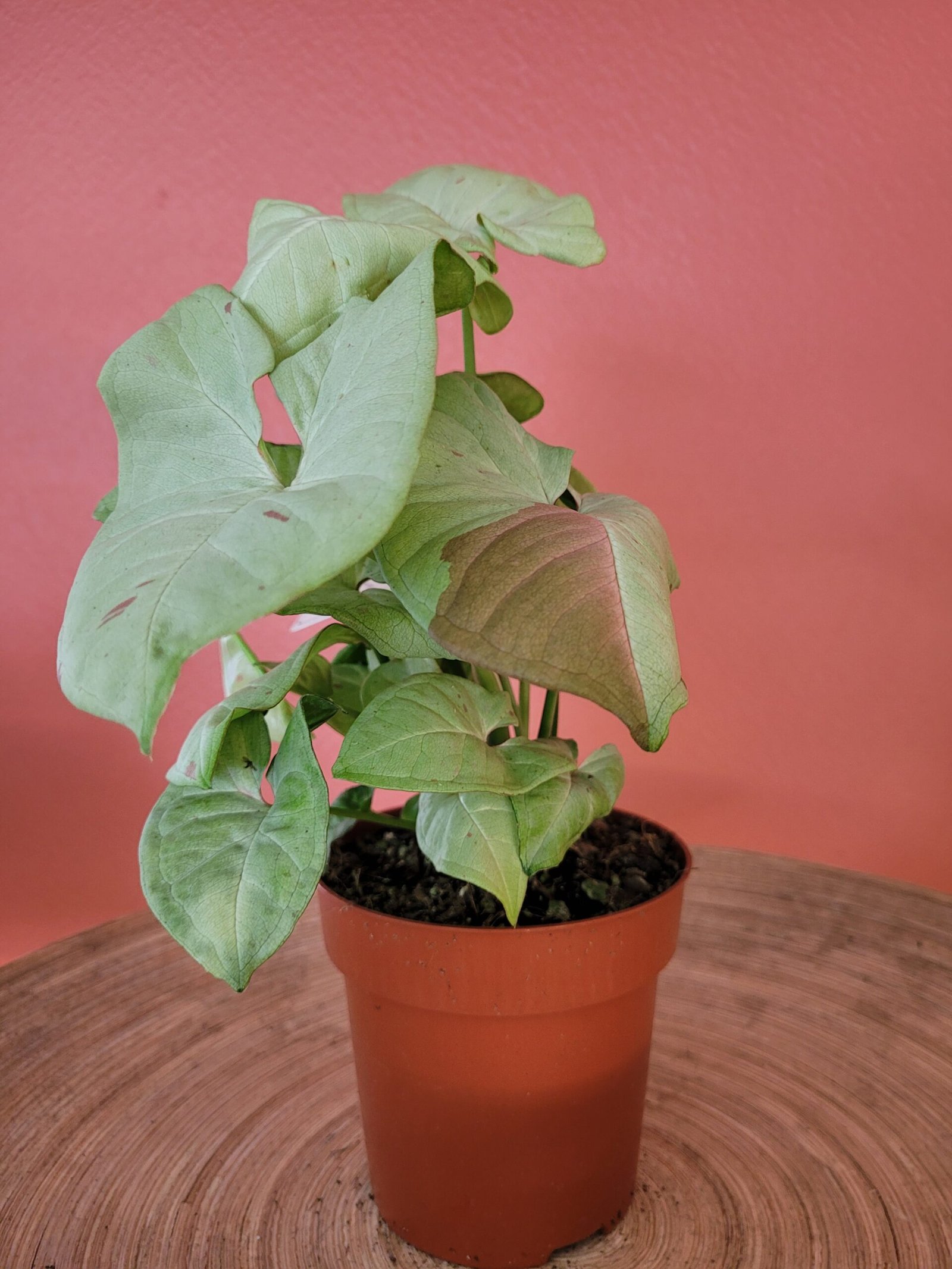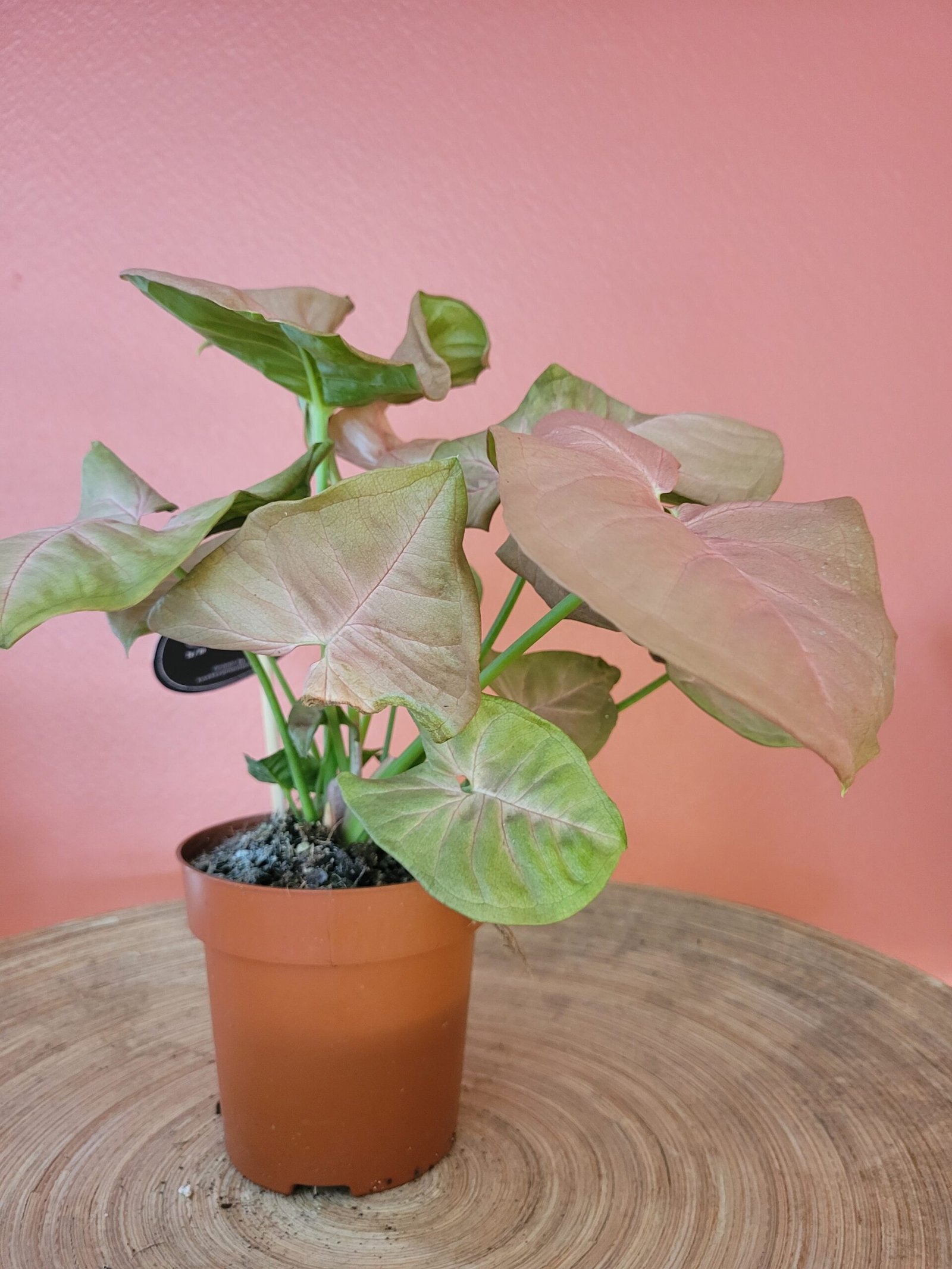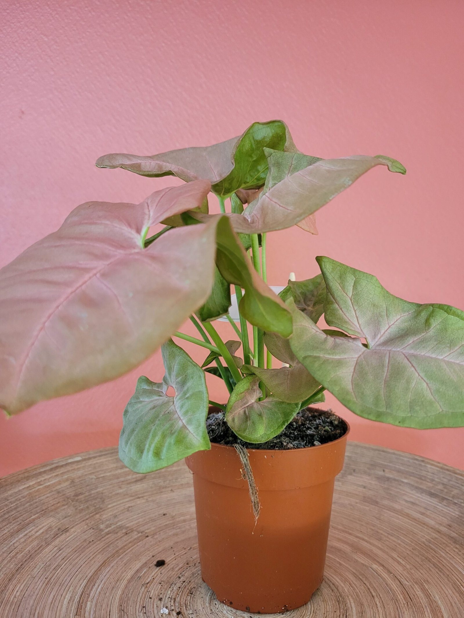 Le Syngonium ‘Neon’ est une variété très décorative, appréciée pour son feuillage rosé, qui illumine instantanément tout espace intérieur.